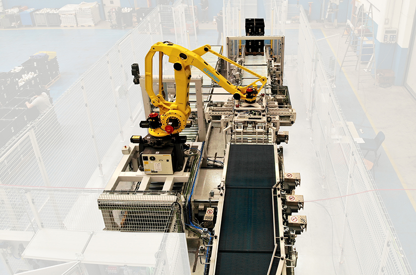 Um sicherzustellen, dass die Effizienz des Systems unabhängig von der Qualität der Tragetasche (etwaige Transportschäden usw.) hoch bleibt, wurde der Roboter-Depalettierer außerdem mit einem Sicht- und Kontrollsystem für die Palettenform ausgestattet.