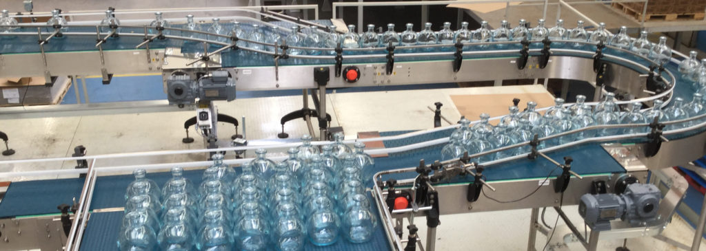 • Bandförderer für leere Glasflaschen für die Beschickung der Füllmaschine