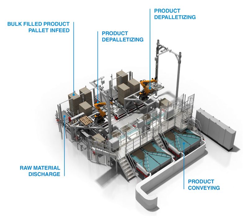 • Bulk-filled products palletizers and depalletizers