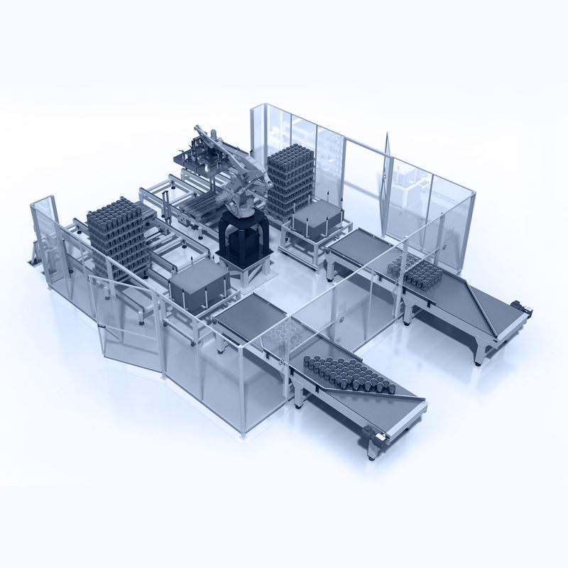 Die Depalettiererserie RAD EC/FC SAGITTARIUS ermöglicht das Depalettieren von leeren (EC) oder gefüllten (FC) Dosen, Gläsern und Flaschen mithilfe eines Geräts mit einem Magnetkopf (PM) oder einem Vakuumkopf (PV).
